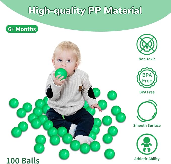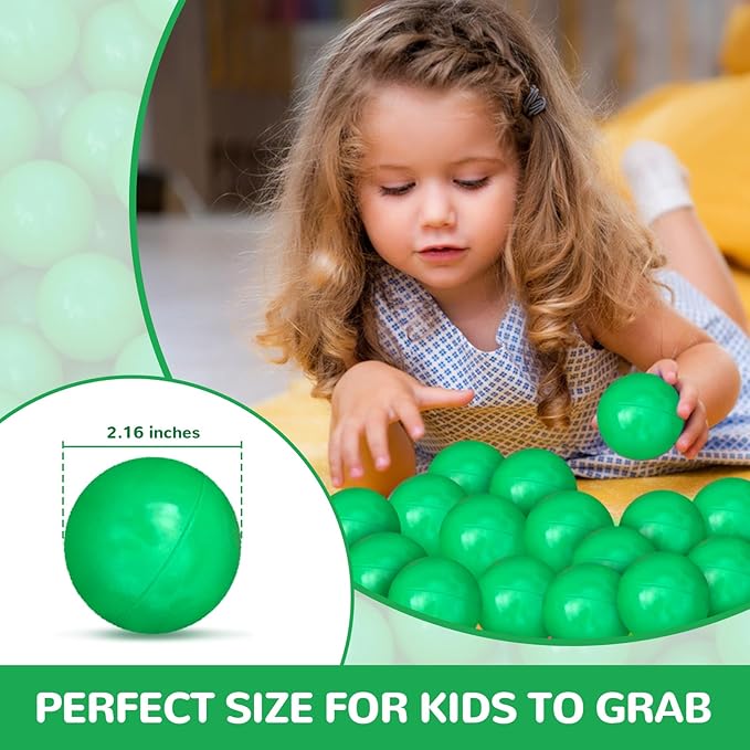 Ball Pit Balls 100 Phthalate Free BPA Free Crush Proof 2.16 Inches Plastic Balls for Ball Pit Ideal Gift for Toddlers Babies Kids Pool Water Toys Play Tent, Green