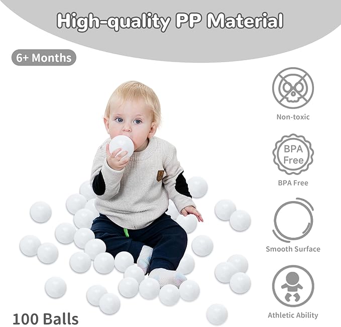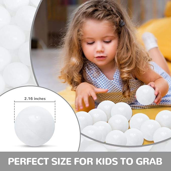 Ball Pit Balls 100 Phthalate Free BPA Free Crush Proof 2.16 Inches Plastic Balls for Ball Pit Ideal Gift for Toddlers Babies Kids Pool Water Toys Play Tent, White