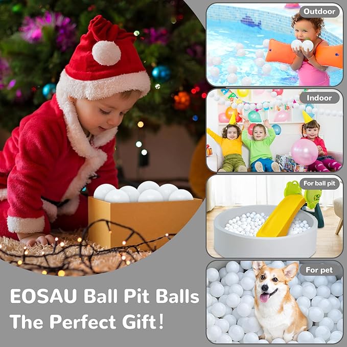 - BABY APPROVED: EOSAU balls for ball pit are made of food-grade PE material, BPA and phthalate-free, non-toxic and odorless; plastic balls measure 2.16 inches to prevent accidental swallowing, very safe for babies, toddlers and kids
