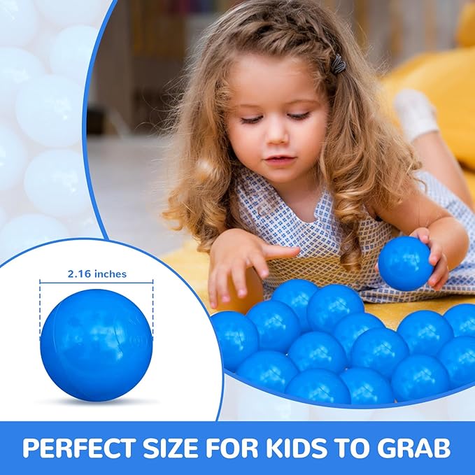 - BABY APPROVED: EOSAU balls for ball pit are made of food-grade PE material, BPA and phthalate-free, non-toxic and odorless; plastic balls measure 2.16 inches to prevent accidental swallowing, very safe for babies, toddlers and kids