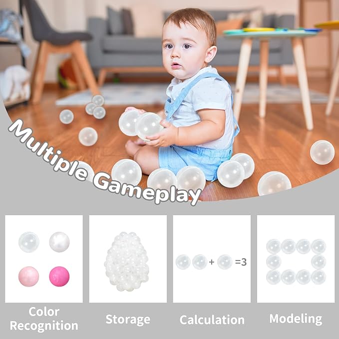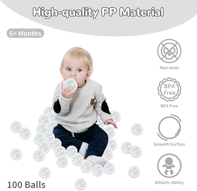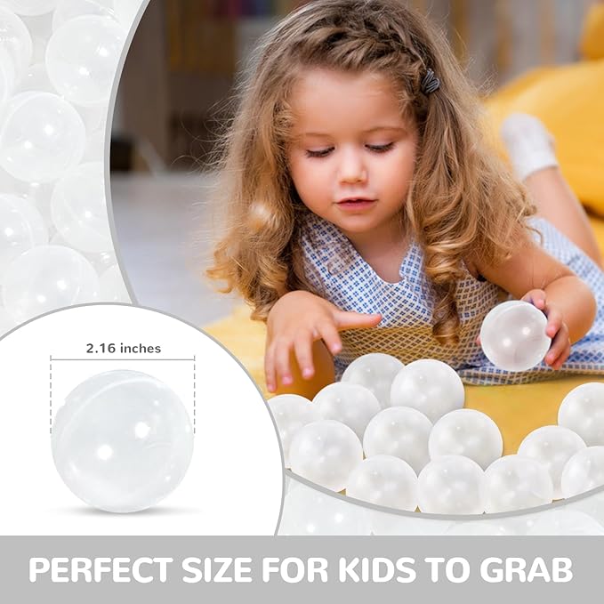Ball Pit Balls 100 Phthalate Free BPA Free Crush Proof 2.16 Inches Plastic Balls for Ball Pit Ideal Gift for Toddlers Babies Kids Pool Water Toys Play Tent, Clear