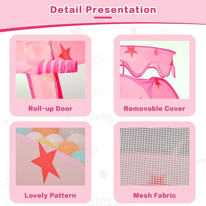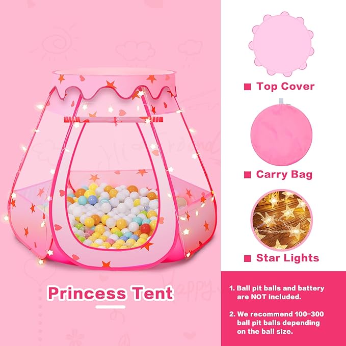 Baby Ball Pit for Toddler: with Star Lights - Pop Up Princess Play Tent for Kids - Indoor Outdoor Baby Girl Toys Birthday Gifts - NO Balls (Pink Tent)