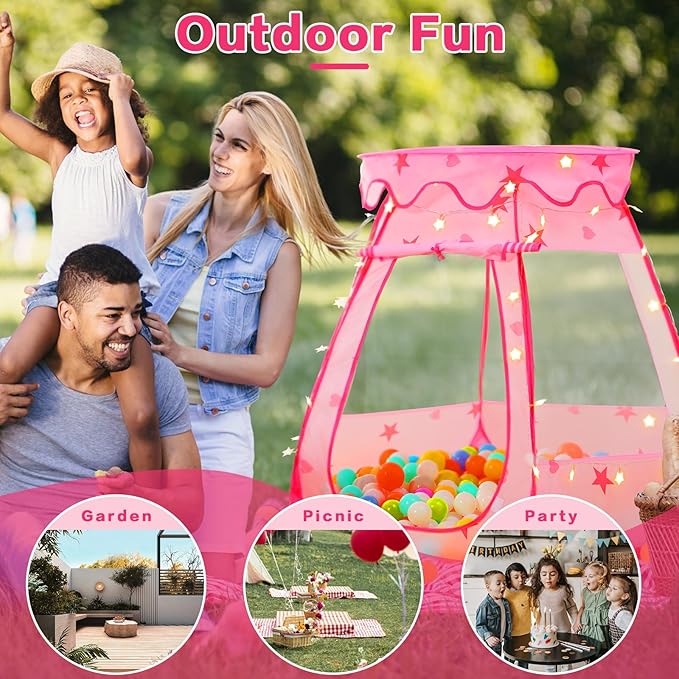 - Pop Up Princess Toy: The automatic pop up design of the ball pit for babies makes it open in seconds and no tools required. Save your assembly time and energy. Our toddler girls toy is lightweight and portable that can be taken to parties, picnics, parks, daycare, school, carnivals, sleepovers. It is the best birthday gift for for girls