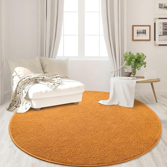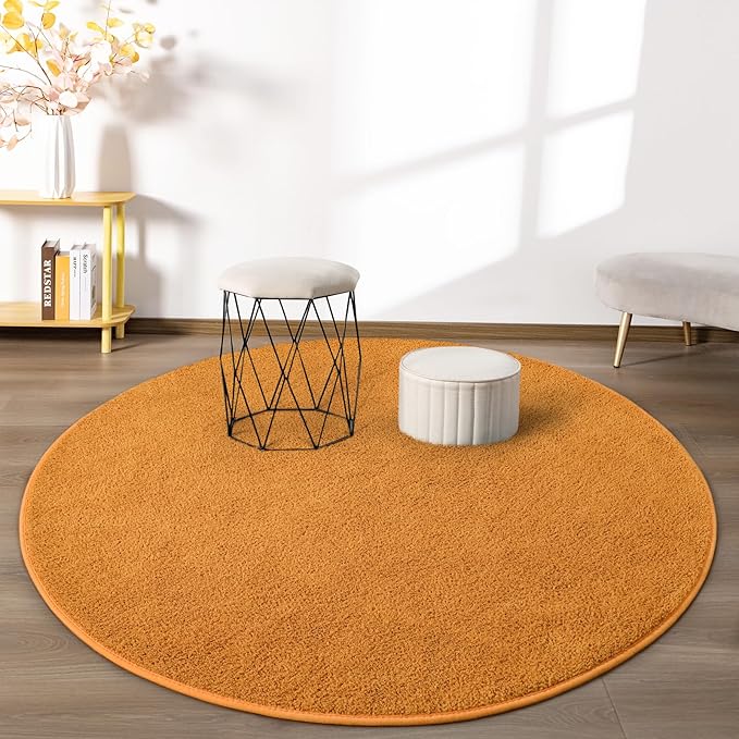 - Perfect Home Decoration: The orange carpet adopts a minimalist design and modern style concepts, using solid colors to add warmth and luxury to your room. Cozy rugs are available in a wide range of colors and sizes to meet your different styles and needs, ideal for all modern minimalist decoration, 4x4 feet round rugs can be applied to living room rugs, bedroom rugs, kids' rugs, dormitory rugs, nursery rugs, lounge rugs, and other room decorations and more
