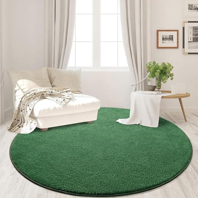 - Perfect Home Decoration: The green carpet adopts a minimalist design and modern style concepts, using solid colors to add warmth and luxury to your room. Cozy rugs are available in a wide range of colors and sizes to meet your different styles and needs, ideal for all modern minimalist decoration, 4x4 feet round rugs can be applied to living room rugs, bedroom rugs, kids' rugs, dormitory rugs, nursery rugs, lounge rugs, and other room decorations and more