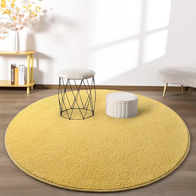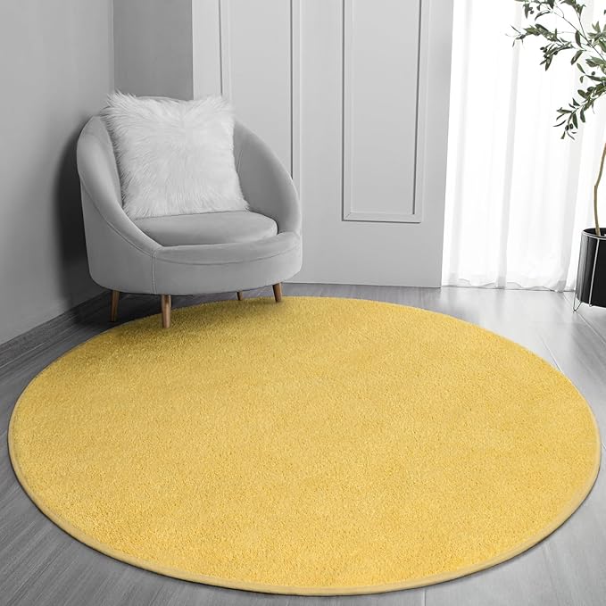 - Perfect Home Decoration: The yellow carpet adopts a minimalist design and modern style concepts, using solid colors to add warmth and luxury to your room. Cozy rugs are available in a wide range of colors and sizes to meet your different styles and needs, ideal for all modern minimalist decoration, 4x4 feet round rugs can be applied to living room rugs, bedroom rugs, kids' rugs, dormitory rugs, nursery rugs, lounge rugs, and other room decorations and more