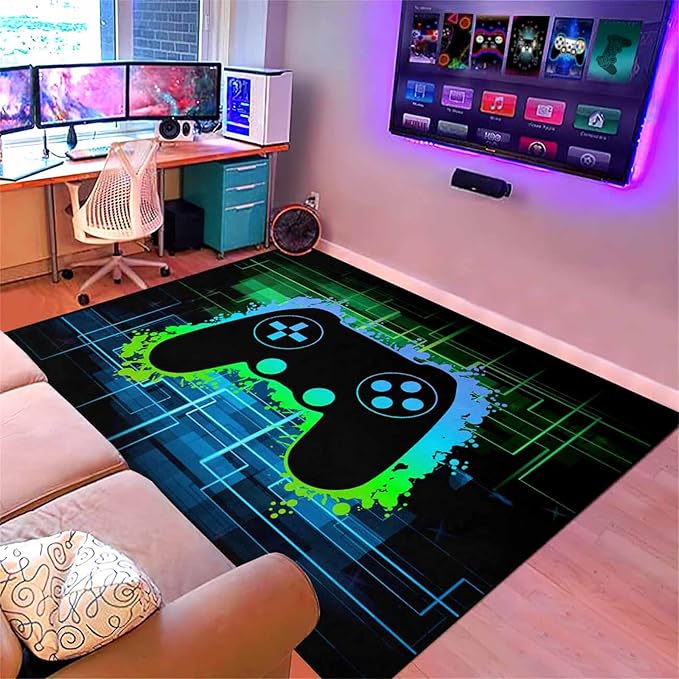 - Great Gift:The design is inspired by Game,cool graphics make your room unique and fun. The gamer rug is the gift for your friends and family,gamer rugs for bedroom boys especially for Kids gifts.for the Christmas,Birthday,Children's Day,and other important festivals. gaming decor for boys room