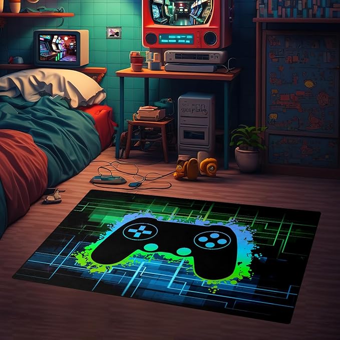 - Great Gift:The design is inspired by Game,cool graphics make your room unique and fun. The gamer rug is the gift for your friends and family,gamer rugs for bedroom boys especially for Kids gifts.for the Christmas,Birthday,Children's Day,and other important festivals. gaming decor for boys room