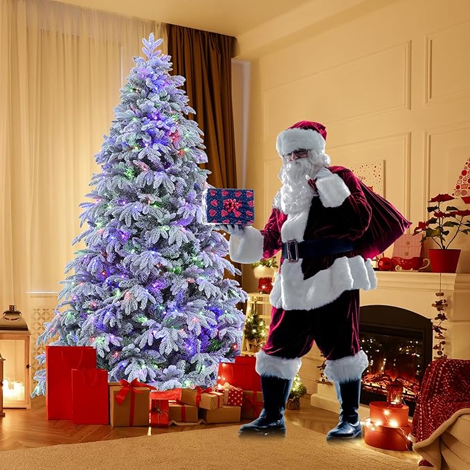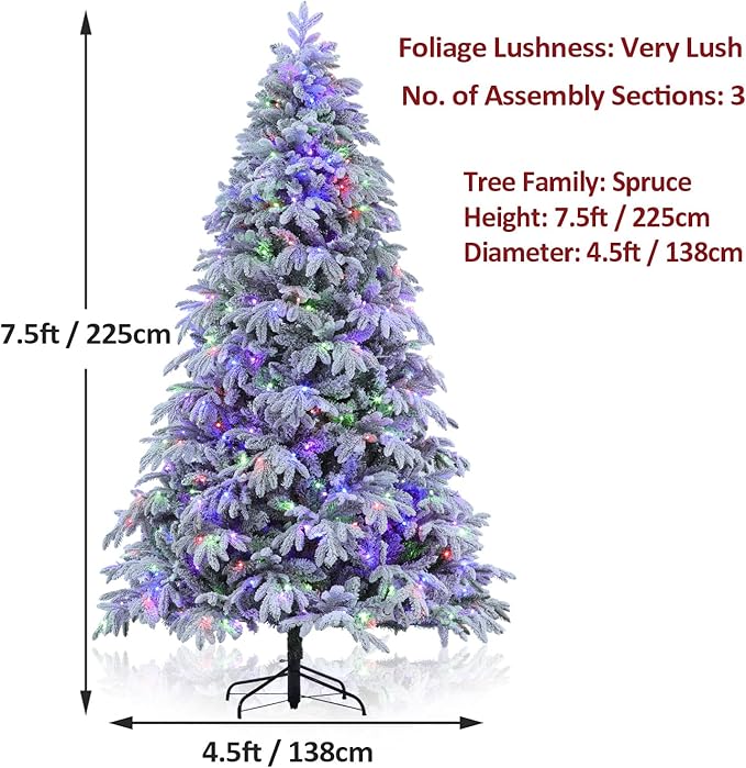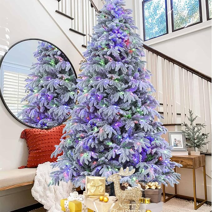 - Realistic Appearance: Flocked Christmas trees are designed to look like real snow-covered trees, create a beautiful and festive holiday display, adding a touch of natural beauty to your home. The prelit Christmas tree has 2700 PE+PVC fluffy branch tips, which are fireproof and waterproof, safe for long term use.