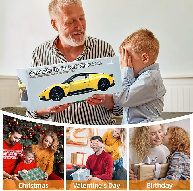- Enjoy the speed and excitement: MC20 as Maserati's latest supercar, our Maserati MC20 RC car simulates a really powerful engine, as one would expect, with a maximum speed of 12KM/h; we are equipped with a detachable remote control handle to provide a comfortable racing experience for both left-handers and right-handers .