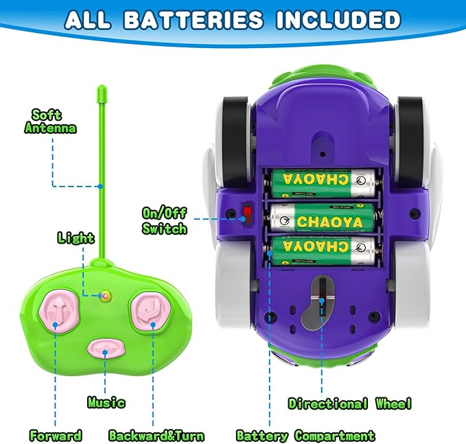 - Perfect Gifts For Toddlers: Our remote control car for toddler complete with engaging music and sound features, two interchangeable unicorn figures, and two remote controls with forward and reverse motions. The LED flashing headlights bring more fun to boys and girls age 2 3 4 5.
