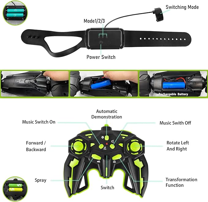 - Remote control+Gesture Controlled: The outdoor toys gesture Drift Rc Car adopts 2.4GHz transmission technology, which is sensitive to control strong anti-interference and ultra-long distance control. And another amazing hand controlled watch,The remote control car for boys 4-7 supports quick response to gesture control, Putting on the sensing watch, when fingers dance, the rc drift car will follow, drive and change at will. Gesture Sensing RC Stunt Car transformer toy cars for 8-12 year old boy