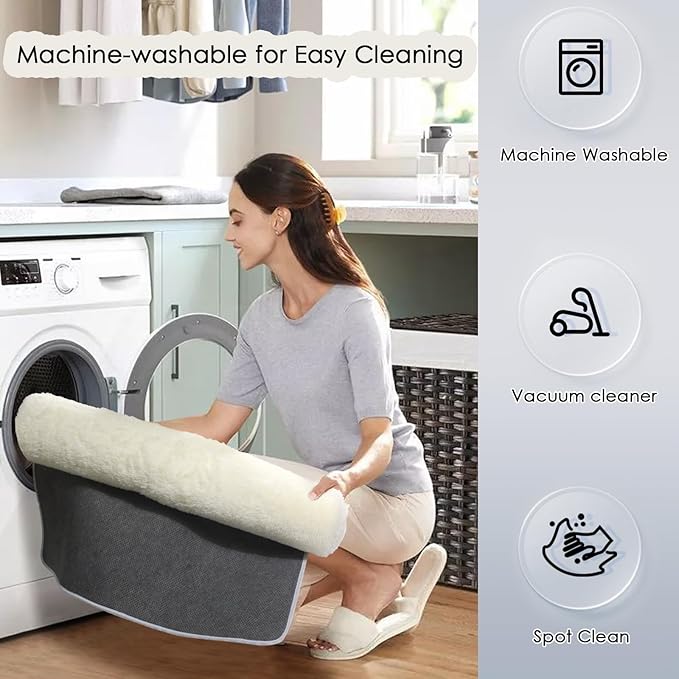 - How to Clean: We suggest you vacuum or wipe it, or hand wash and air dry to make this area rug fluffy and have a long service life. If you are tired of tedious cleaning, this furry rug is machine-washable for easy cleaning to save you time and energy
