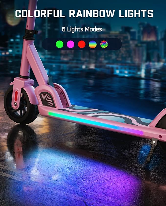 - Fun & Safety: There are flashing LED lights (5 lights modes) next to the pedals of the kids scooter, making children's childhood full of joy. It can attract the crowd's attention, remind other vehicles to keep their distance and make night riding safer