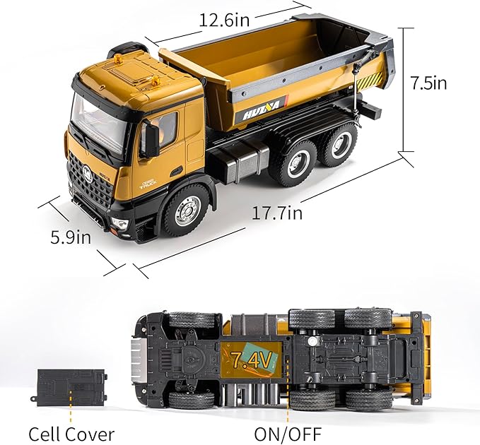 - 📦PRODUCTS INCLUDE: 1 x remote control dump truck, 1 x 2.4Ghz remote control, 2 x 500mAh 7.4v rechargeable lithium batteries, 1 x USB charging cable and extra gift.