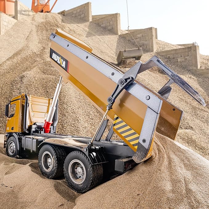 - ✅HIGH QUALITY: YAZHIYI This remote control dump truck toy is made of high quality plastic and metal, sturdy and durable with realistic details, suitable for indoor and outdoor play.