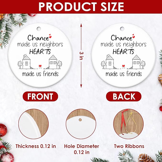 - NEIGHBORS CHRISTMAS GIFTS - Add a touch of warmth to your Christmas decor with our delightful ornament gift for your loved ones! Surprise your friends next door with these friendship, neighbor gifts for women friends, birthday, Christmas gifts for neighbors, friends as symbols of your treasured relationships for many years to go.