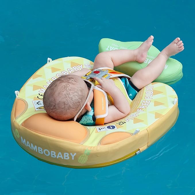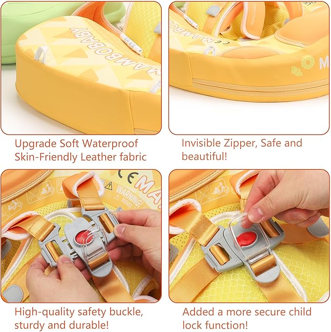 - 【360° FULL PROTECTION】Add removable tail, Prevent baby from flipping backward. Upgraded safety buckle, The Upgraded safety buckle provides 5 support points and perfect 40°angle to keep a balance to avoid baby flip over and fall off. Upgraded into 2 swim ways which are backstroke and breaststroke with different buckle method. Backstroke Suitable for 3~6months baby, breaststroke Suitable for 3~24months baby.