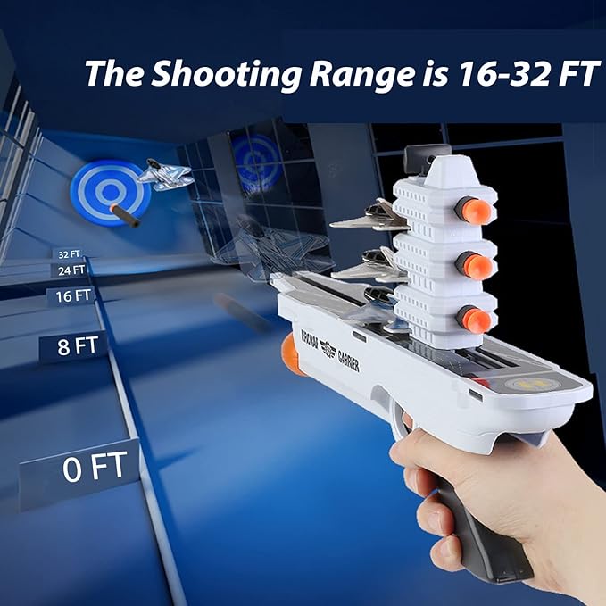 - 【2-IN-1 Flight Modes】The two flight forms of the modified aircraft carrier launcher flying toy airplane set can be switched at will. The set contains 1 modified aircraft carrier, 4 airplanes, and 8 soft foam poles (foam darts).