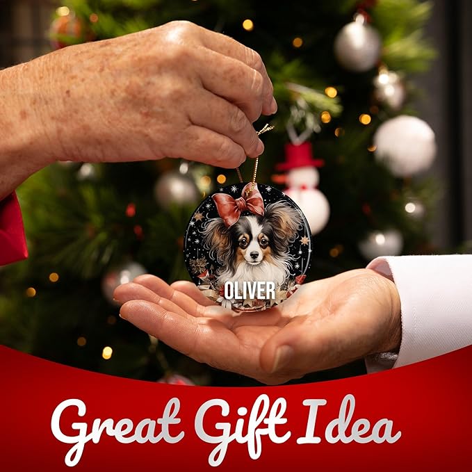 Papillon Personalized Dog Ornament - Pet Ornament for Christmas Tree - 3" Round Ceramic - Printed in USA - Choose from 200 Breeds - Dog Mom - Dog Dad - Xmas Decoration DOG0154
