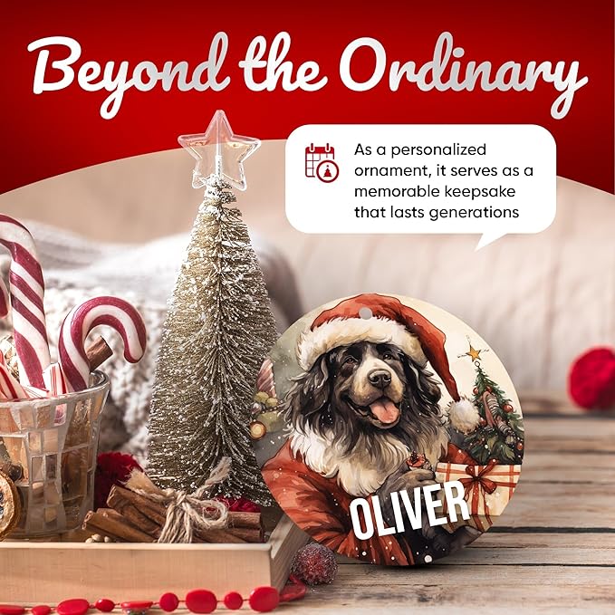 Newfoundland Personalized Dog Ornament - Pet Ornament for Christmas Tree - 3" Round Ceramic - Printed in USA - Choose from 200 Breeds - Dog Mom - Dog Dad - Xmas Decoration DOG0146