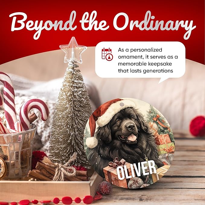 Newfoundland Personalized Dog Ornament - Pet Ornament for Christmas Tree - 3" Round Ceramic - Printed in USA - Choose from 200 Breeds - Dog Mom - Dog Dad - Xmas Decoration DOG0147