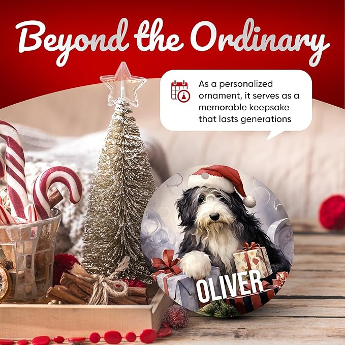 - Personalized Dog Ornaments: Crafted from durable 3" ceramic, these ornaments feature high-quality sharp prints, showcasing various dog breeds with vivid detail.