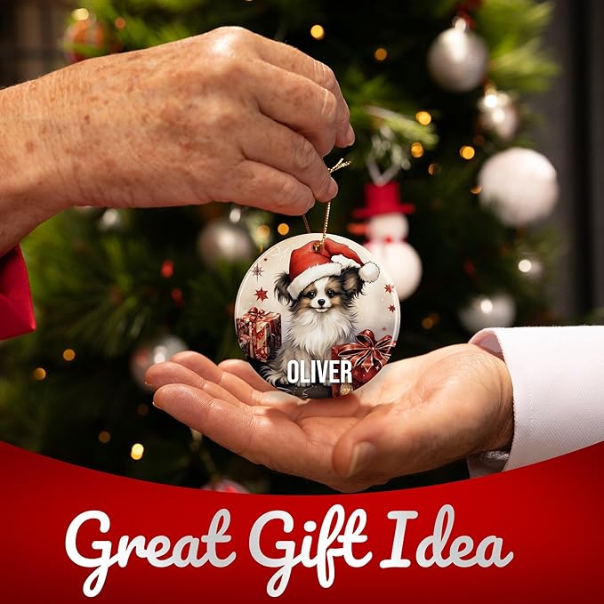 Papillon Personalized Dog Ornament - Pet Ornament for Christmas Tree - 3" Round Ceramic - Printed in USA - Choose from 200 Breeds - Dog Mom - Dog Dad - Xmas Decoration DOG0153