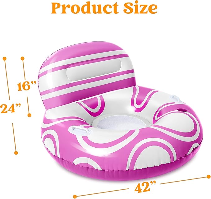 - SIZE: 42" x 42" x 24" Perfectly sized for a luxurious lounging experience, our inflatable pool lounger offers a spacious and comfortable seat for your poolside retreat.