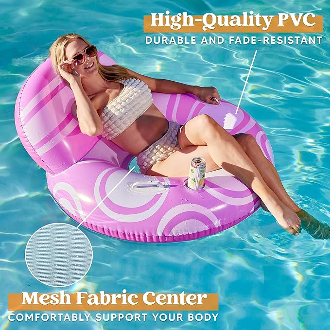 Sloosh Inflatable Pool Floats Chair - River Tube Pool Floaties Sofa with Big Backrest, Lounge Above Water Floating Chair Mesh Bottom Swimming Pool Party Toys Lounger Lake Raft for Adults (Pink White)