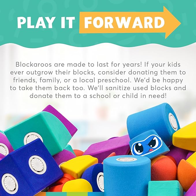 - PATENTED MAGNETIC SYSTEM - Blockaroo building blocks are the perfect way to introduce your child to early-learning STEM toys. Preschoolers can explore shapes, colors, and frustration-free stacking with these safe, easy-to-handle magnetic foam blocks!
