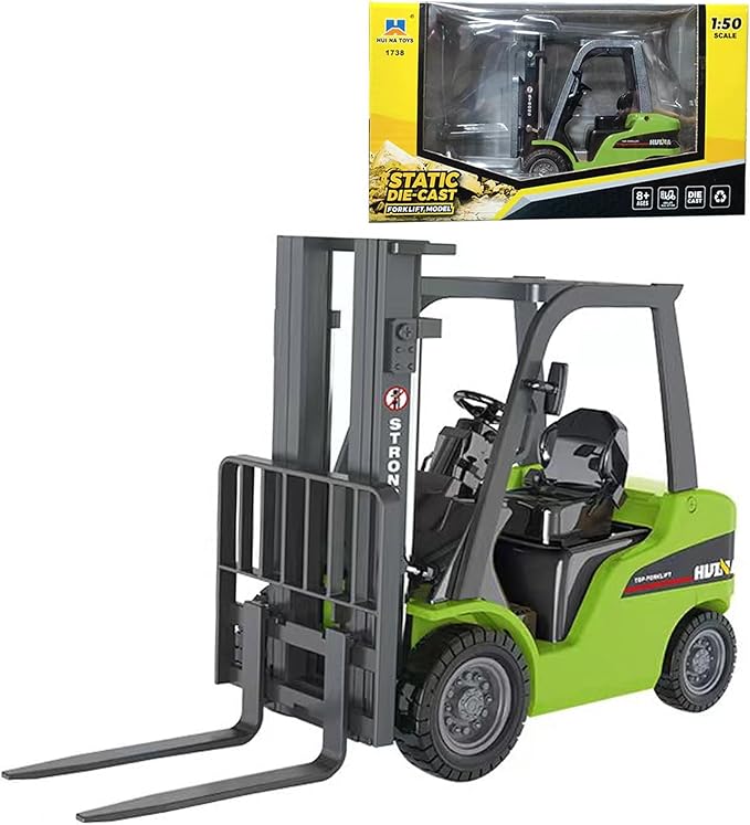 Warehouse Truck Vehicle Toy - Forklift Construction Toys for Kids, 1:50 Scale, Heavy Metal (Green)