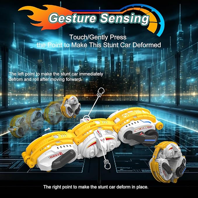 Remote Control Car, RC Stunt Snake Car 360° Roll with Hand Gesture Sensing and Touch Rotation, Super Fast Racing Car for Christmas Birthday, Indoor/Outdoor Toys for 6-12 Year Old Boys Girls - Yellow