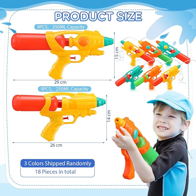 18 Pcs Large Water Guns for Kids Adults Long Range Water Pistol Toy Blaster Squirters Guns for Summer Outdoor Swimming Pool Beach Sand Fighting Play