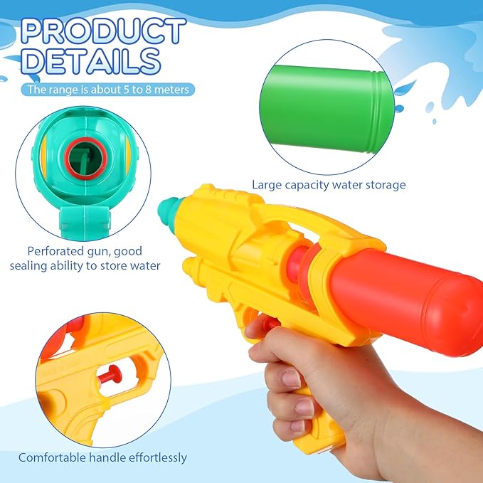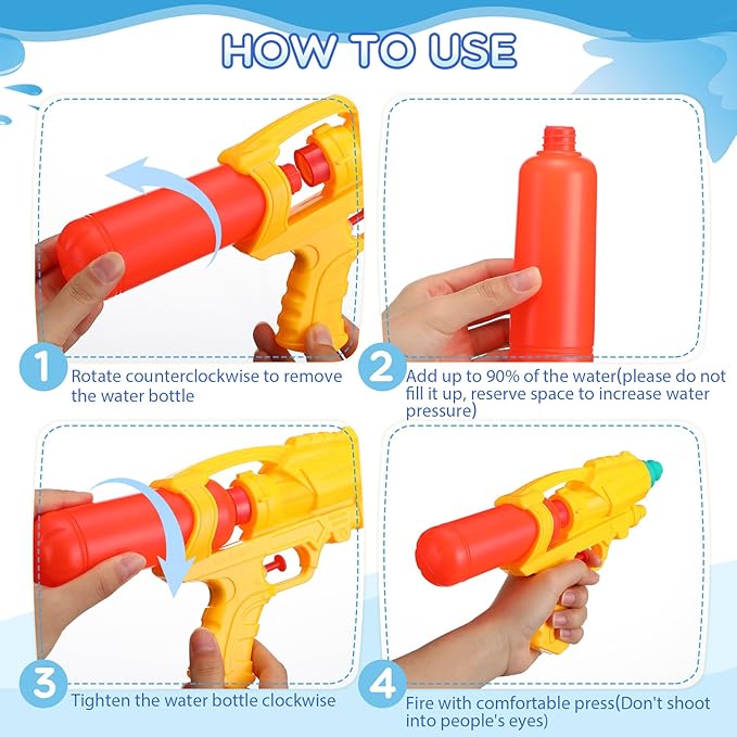 - Simple and Secure Usage: our water toys are simple and safe to use, all you need to do is fill the cylindrical tank with water and push the button, and a powerful stream will come out automatically at the push of a button, making the operation easy even for the youngest players, the water tank is sealed tightly, ensuring no leakage