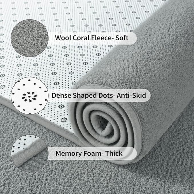 - Premium Memory Foam: There is a thickened resilience memory foam sandwich in the middle of our modern indoor carpet to keep your skin off cold floors and also help minimize noise when walking