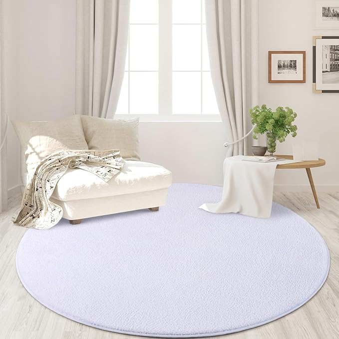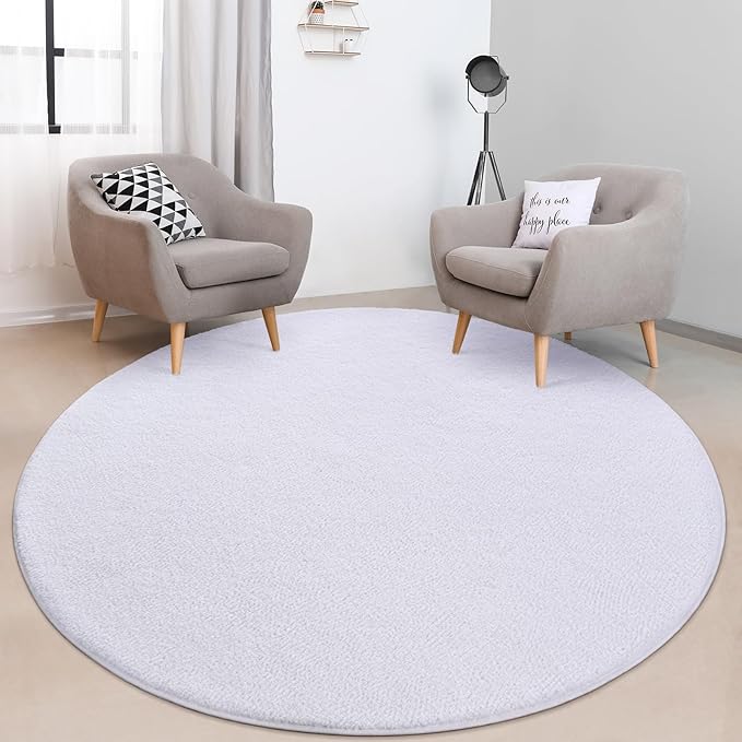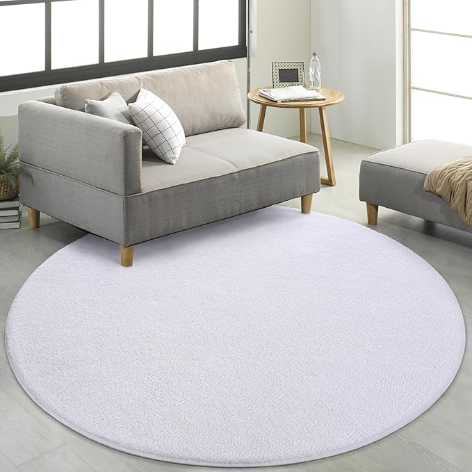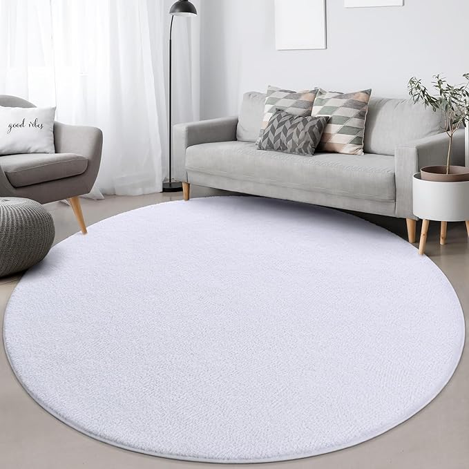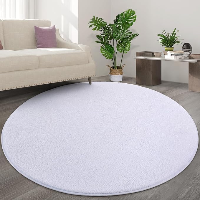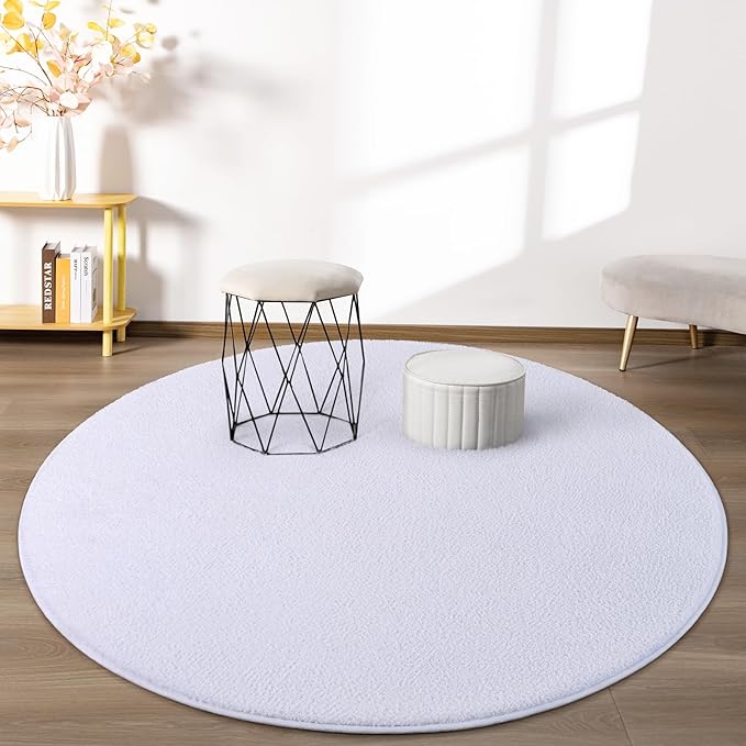 - Perfect Home Decoration: The white carpet adopts a minimalist design and modern style concepts, using solid colors to add warmth and luxury to your room. Cozy rugs are available in a wide range of colors and sizes to meet your different styles and needs, ideal for all modern minimalist decoration, 4x4 feet round rugs can be applied to living room rugs, bedroom rugs, kids' rugs, dormitory rugs, nursery rugs, lounge rugs, and other room decorations and more