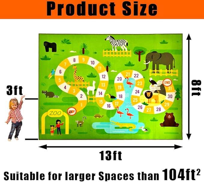 Classroom Rugs for Playroom, Preschool, Daycare Rug for Classroom, Large Learning Numbers Road Play Map Animal Safari Road Playtime Educational Area Rugs for Kids, Nursery(13'x7'7'', Green)