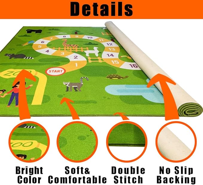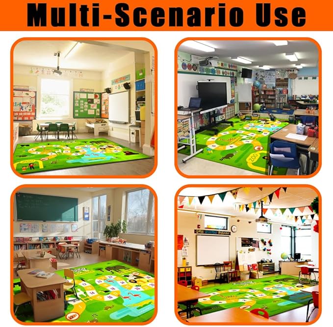- Unique in Design-the school carpet is designed in green color to provide a good teaching environment for students and logical and clear teaching ideas for teachers, enhancing creativity and patience in a subtle way. In addition, the classroom carpet can be used as a visual aid to help teachers organize classrooms and lessons more effectively, and the numbers, grids, and animals included can be used as extensions to help children understand visually.