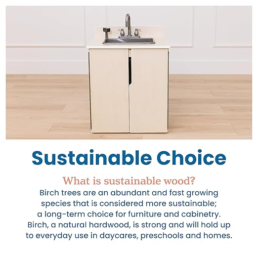 - Kitchen Playset: Cleaning dishes has never been more fun with the wooden sink designed to inspire imaginations during pretend play in a classroom or playroom; practice skills like scrubbing and drying