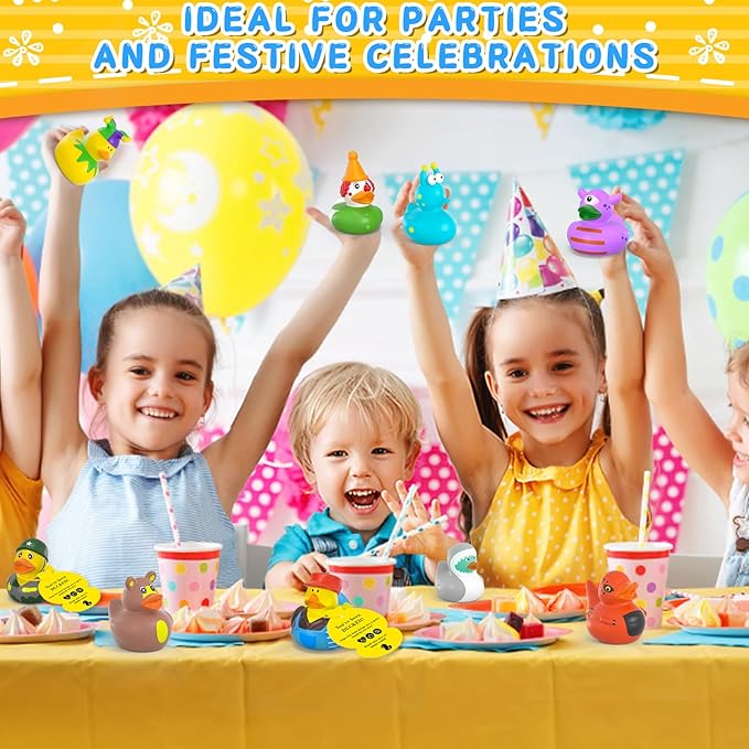- 【Rubber Duckies】Treat Goodie Bag Stuffer Gifts-They are well-made ducks with good paint jobs.These are perfect as party favors or classroom rewards,you can create the treat goodie bag which involve these kind of ducks,candy and other goodie in Halloween,Christmas,Valentine's day or other festival.This will be a fun and surprise.The ducks are made of the sturdy silicone,it's durable and will not be smashed,they can keep good shape year by year,the material is non toxic,please buy it with confidence.