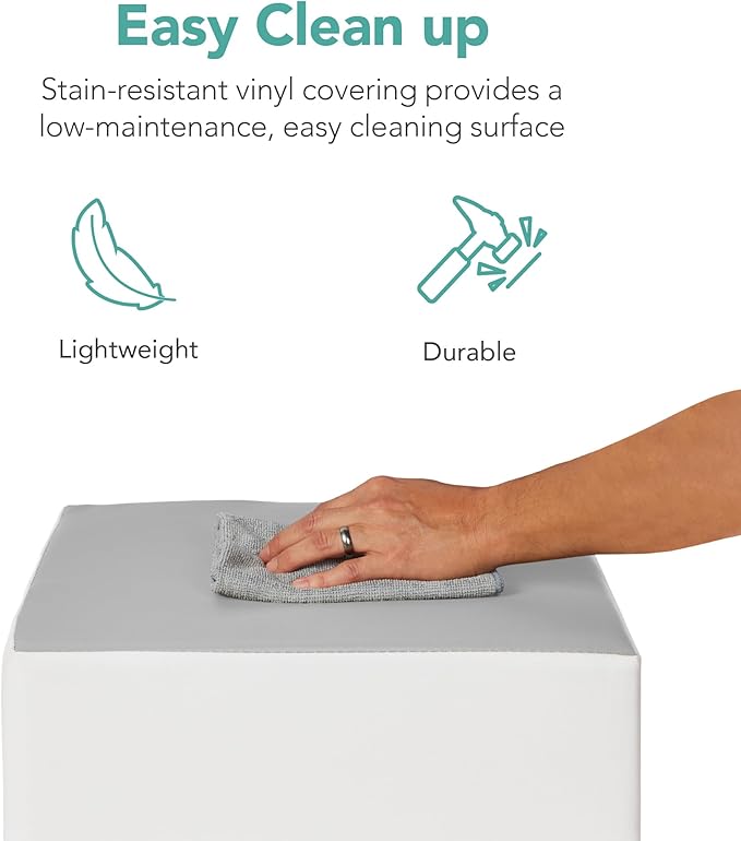 - EASY MAINTENANCE: Lightweight blocks resist stains and wear, thanks to an easy-to-clean vinyl surface that wipes clean with a damp cloth