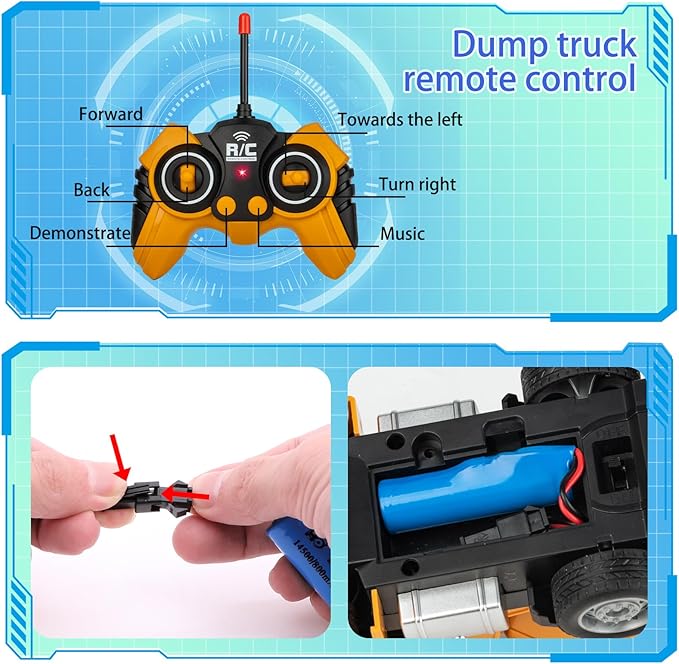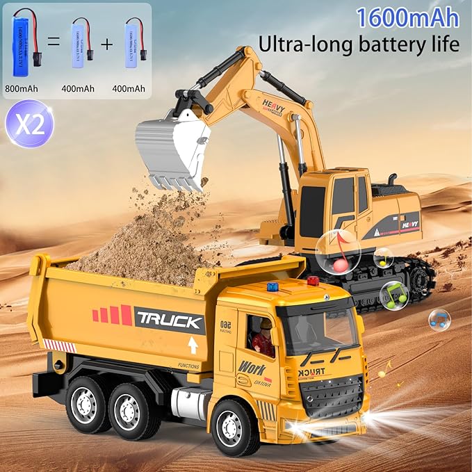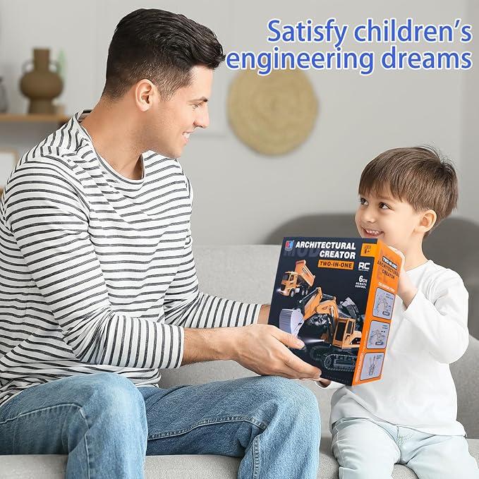 - 【THE BEST PRESENT】This 2 in 1 Remote Control Construction Vehicle Set is a perfect birthday, Christmas gifts for kids. It is the best choice for vehicle-love 3+ages kids. Great for parent-children activity. Also funning toy playing with friends to increase kid’s cooperation ability. Enjoy the fun life together.