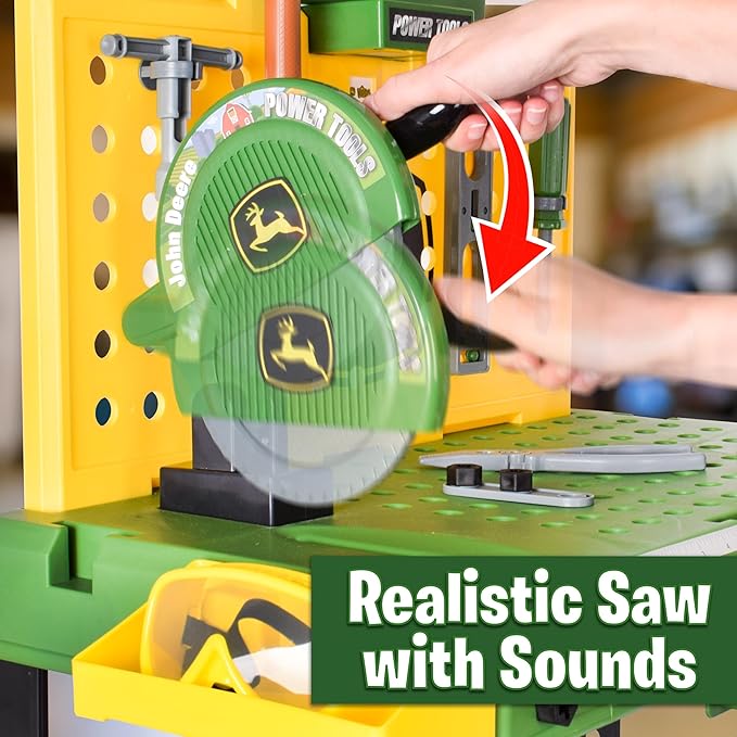 John Deere Kids Workbench, Power Tools Workshop, Build Your Own Toy Tool Box with 39 Realistic Toy Tools and Accessories, 5+