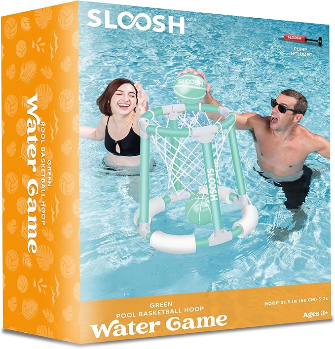 Sloosh Pool Basketball Hoop Toys, Floating Basketball Pool Game, Swimming Floats Toys with Balls Pump, Summer Outdoor Water Play Toy for Kids and Adults (Green)