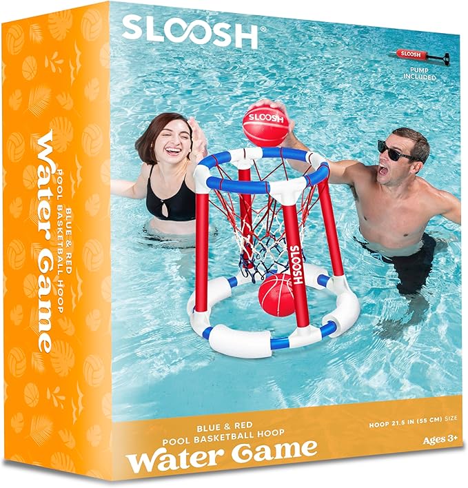 Sloosh Pool Basketball Hoop Toys, Floating Basketball Pool Game, Swimming Floats Toys with Balls Pump, Summer Outdoor Water Play Toy for Kids and Adults (Red Blue)