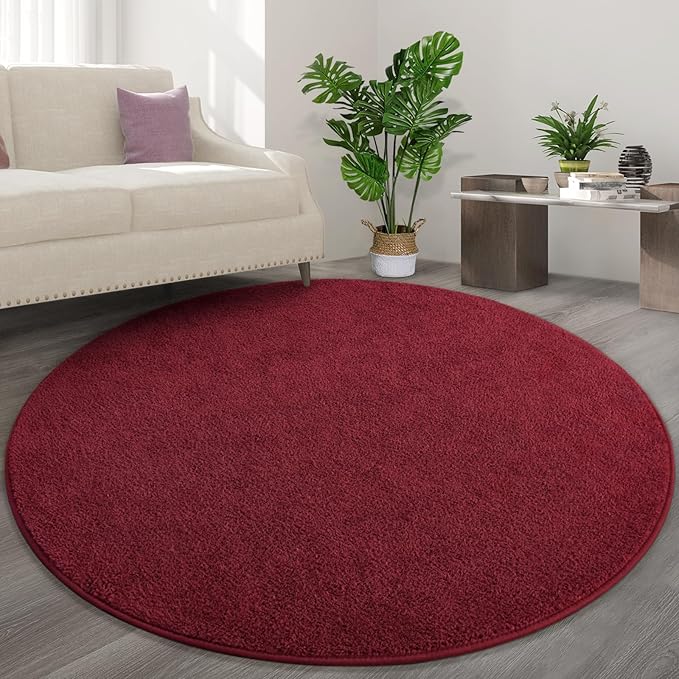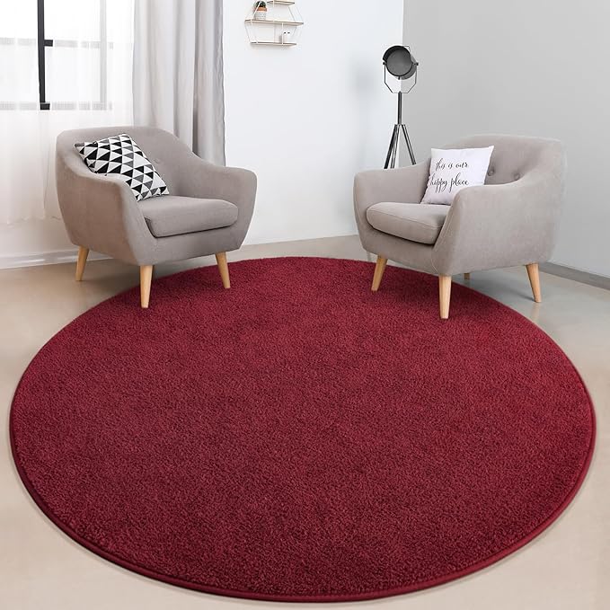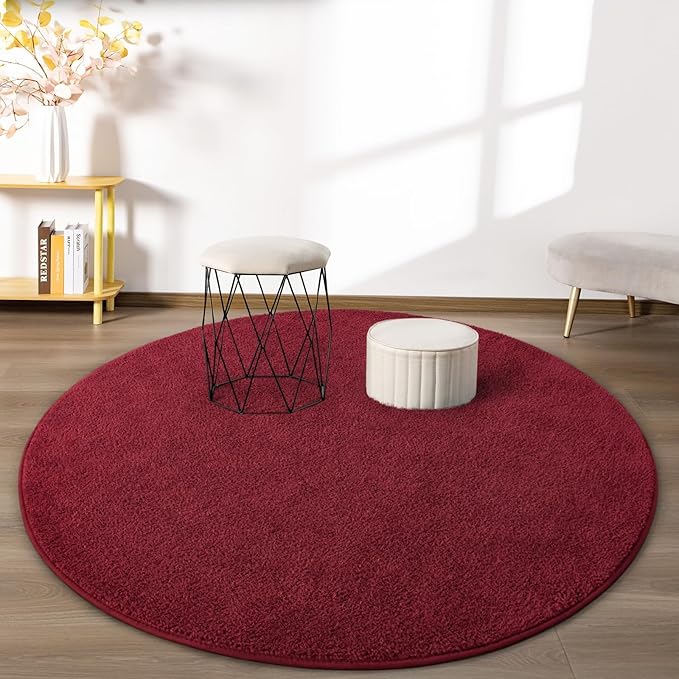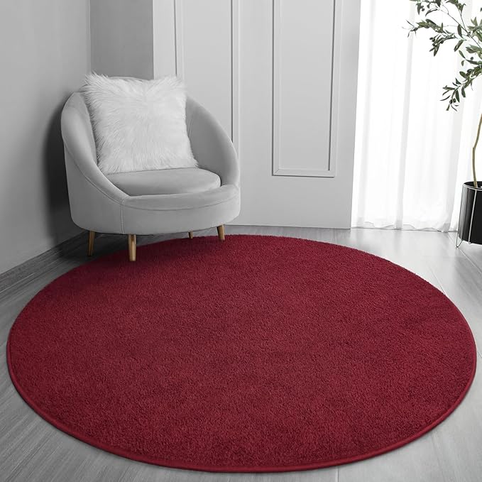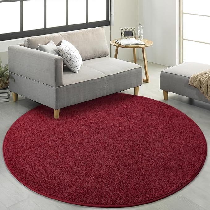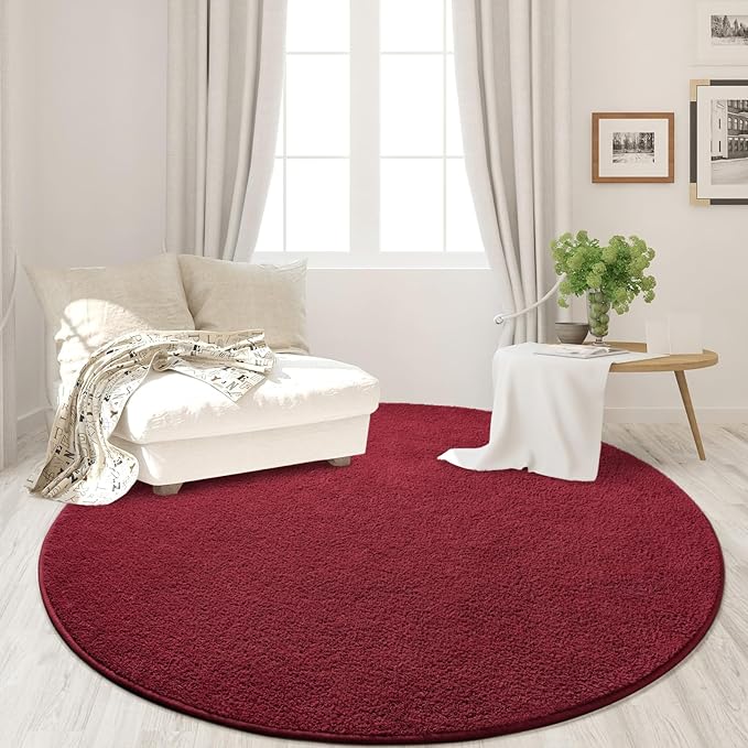 - Perfect Home Decoration: The rose red carpet adopts a minimalist design and modern style concepts, using solid colors to add warmth and luxury to your room. Cozy rugs are available in a wide range of colors and sizes to meet your different styles and needs, ideal for all modern minimalist decoration, 6x6 feet round rugs can be applied to living room rugs, bedroom rugs, kids' rugs, dormitory rugs, nursery rugs, lounge rugs, and other room decorations and more