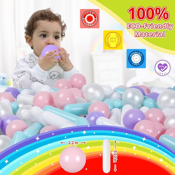 - 🤍Pack of 120 pcs toy Balls with macaron colors., Made of food grade PE material with phthalate free, BPA free, lead free and non-PVC plastic, non-toxic, no smell. Each pit ball is thickened, more durable, and more brightly colored.. CPSC Test Report recommended Age:0+
