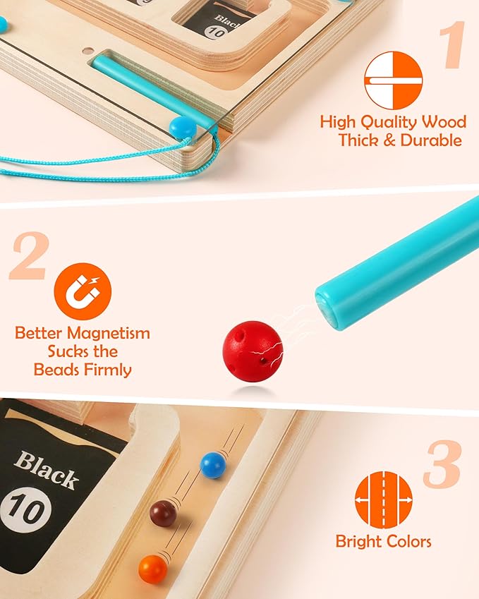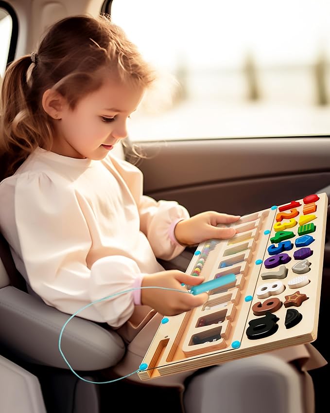 - 3 in 1 Montessori Learning Toys: Magnetic Color and Number Maze + Shape & Number Matching Game. A fun and educational toy for 3 4 5 year old keeps them quiet and focused, enjoys color sorting and counting, and inspires interest in learning math. Children love to play!