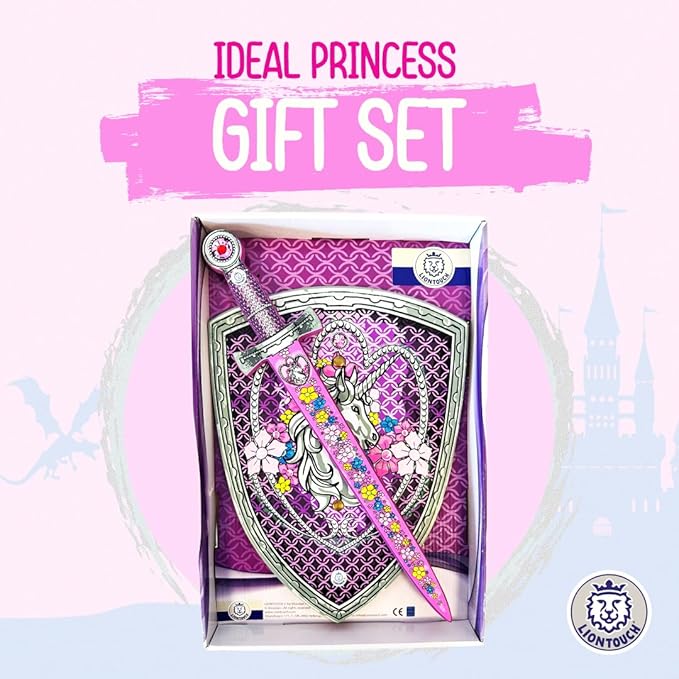 Liontouch - Unicorn Princess Set for Girls - 3-6 Years | Medieval Style Toy Sword & Shield for Pretend Play for Toddlers with Gemstones | Safe & Durable Foam Accessories for Royal Dress Up & Costumes
